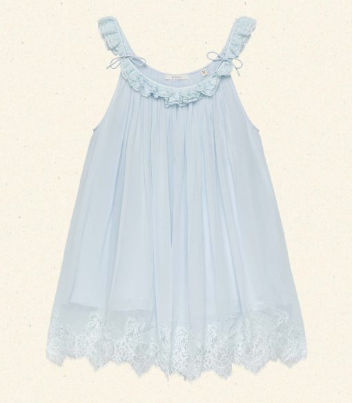Rendered in frothy silk georgette, the ‘60s-inspired Cecilia Dress—a favorite of our co-founder Katherine— features a scoop neckline trimmed with satin piping and a breezy silhouette with a short, flirty hem. Intricate scallop edge lace trims the sleeves and hem.