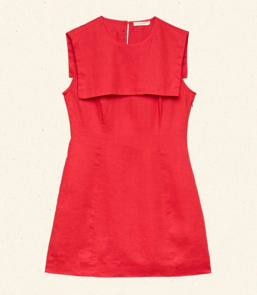 Tailored in a soft midweight linen, the Monroe Dress is a ‘60s-inspired mini-length shift dress. It features a body-skimming shift silhouette with an invisible side zipper and a wide square sailor-style collar. A single self-covered button with a keyhole detail fastens at the back of the neck.