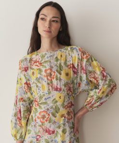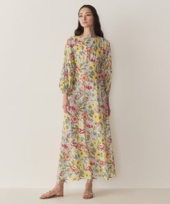 Reimagined for Spring in the softest organic cotton voile adorned with our colorful Anemone Bloom, the ‘30s-inspired Oliana Dress features a subtly shirred bust, voluminous elasticized sleeves, and an empire waist that gives way to an ankle-grazing skirt with princess seams. A single button with a keyhole detail fastens at the back of the neck.