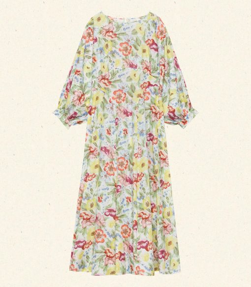 Reimagined for Spring in the softest organic cotton voile adorned with our colorful Anemone Bloom, the ‘30s-inspired Oliana Dress features a subtly shirred bust, voluminous elasticized sleeves, and an empire waist that gives way to an ankle-grazing skirt with princess seams. A single button with a keyhole detail fastens at the back of the neck.