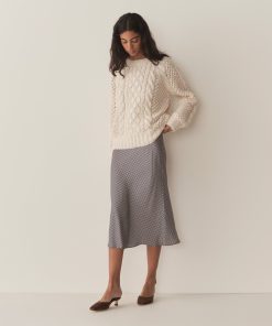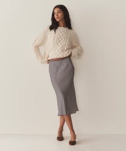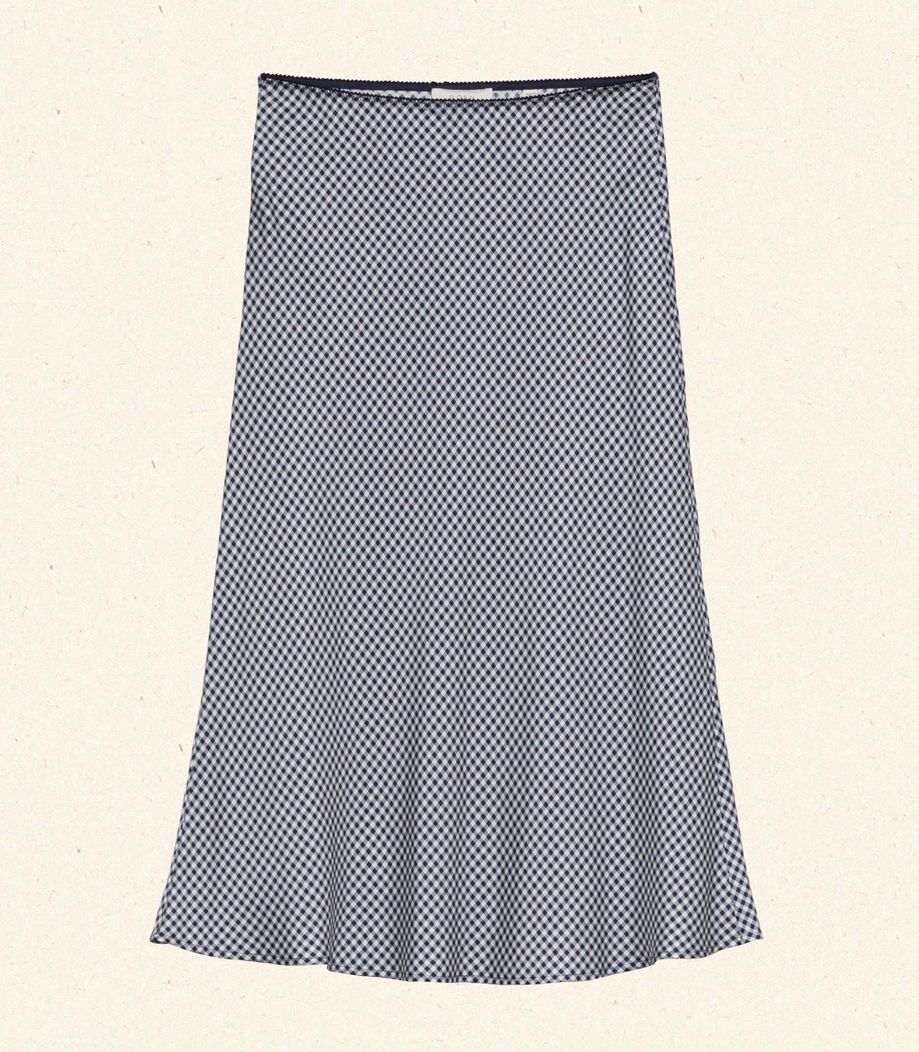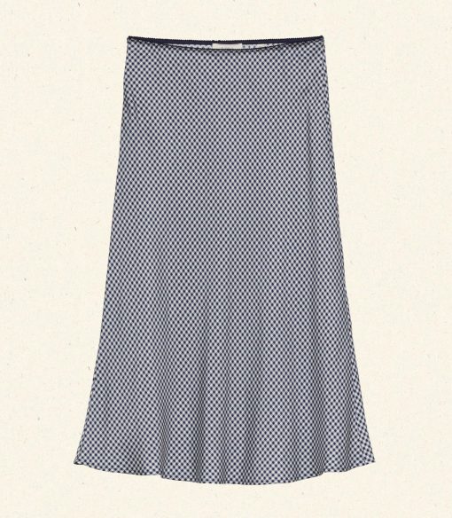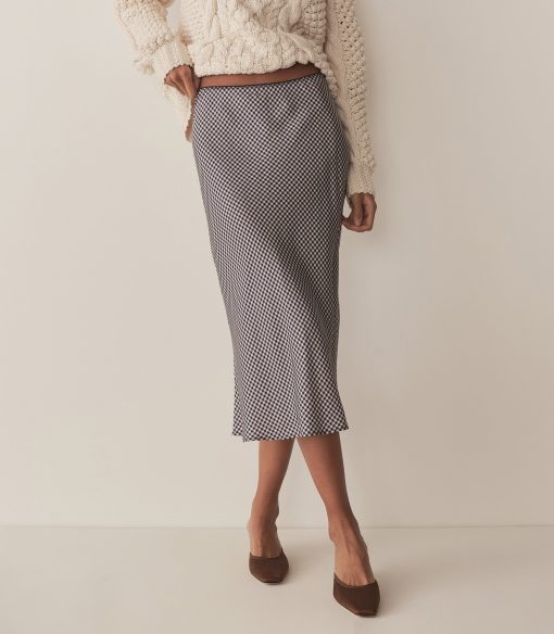 Crafted from a swingy silk-viscose twill and rendered in our nostalgic Santa Marina Gingham, the Elowena Skirt is a slightly shorter version of our beloved ‘90s-inspired Elowen Skirt. It features a high waist trimmed with elastic scallop detailing and a flowy bias-cut skirt that falls to mid-calf.