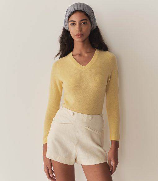 In the softest 100% cashmere, the Garance is a lightweight, ’90s-inspired knit with slim fit, V-neckline, and bracelet-length sleeves. Whether worn alone or as a supersoft layer, this sweater is sure to become a closet classic.nnMade with responsibly sourced, traceable cashmere following strict animal welfare, environmental, and social guidelines. Learn more about our commitment to traceability in our 2023 Impact Update.