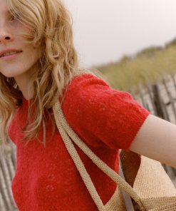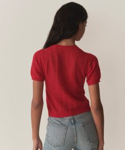 In a soft, slightly sheer blend of superfine alpaca and merino wool, the ‘60s-inspired Monica Sweater features a delicate allover pointelle design, short sleeves, and ribbing at the neckline, cuffs, and hem. Hitting slightly below the true waist, it can be layered or worn on its own.