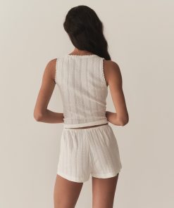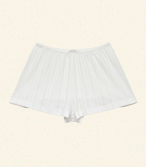 Our Loren Short returns for Summer, reimagined in our signature soft organic cotton pointelle. An effortless pull-on style, it features an A-line silhouette and a high waist trimmed with elastic scallop detailing.