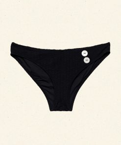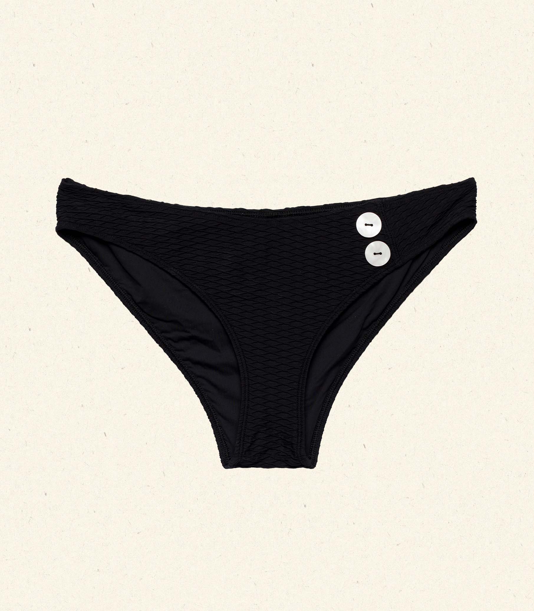 The Alara Bikini Bottom channels 1960s swimwear styles, with a low-rise waist and medium-coverage cut. Crafted from a stretchy, honeycomb texture swim fabric and fully lined, it’s finished with zigzag stitching and two oversized faux shell buttons at the hip.