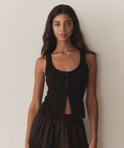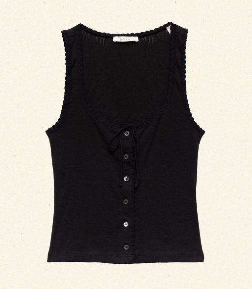 Doen Clothing Tees & Tanks Lois Tank | Black Quelle Jolie Pointelle