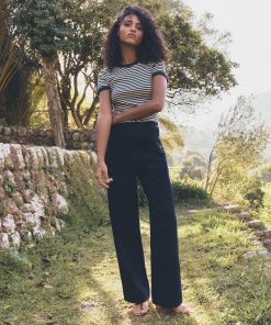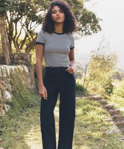 Crafted from a soft blend of regenerative and recycled cotton and rendered in our nautical navy-and-white Nantucket Stripe, the Vivi is our take on a ‘90s-style baby tee. It features short sleeves, a classic crew neck, and a fitted silhouette.